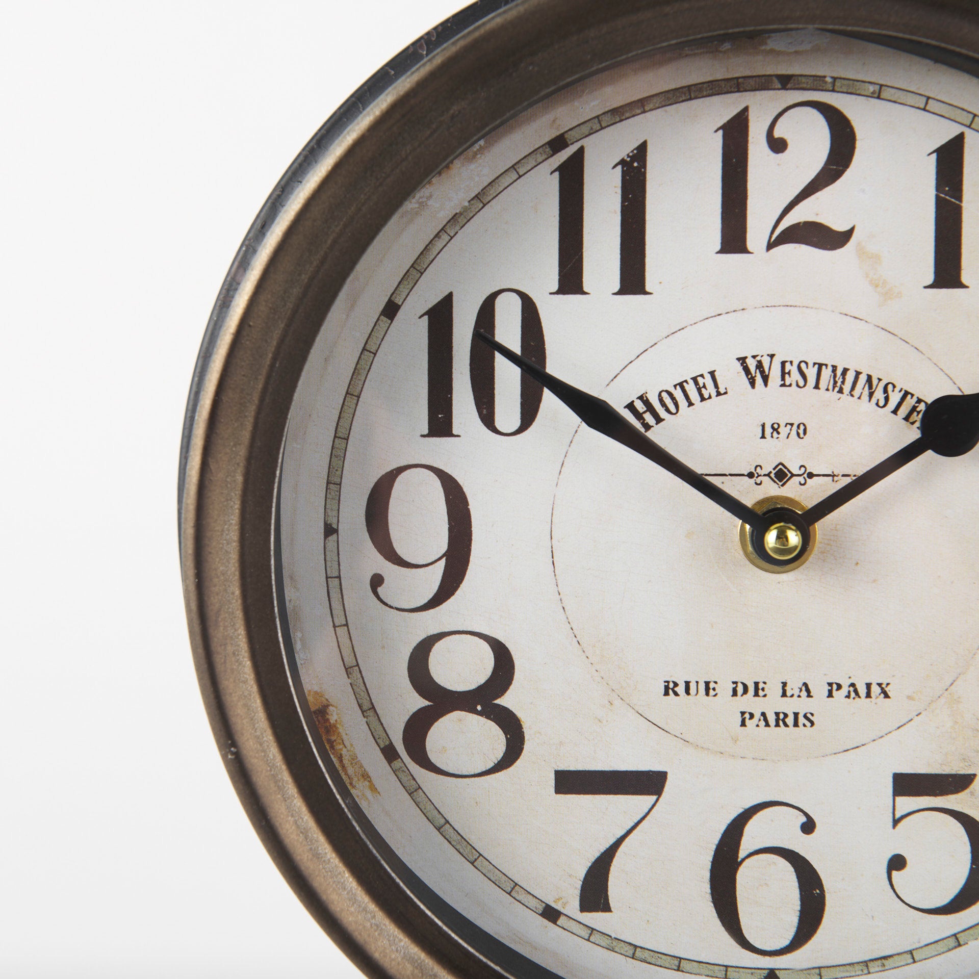 Designed to be an instant head-turner in modern or industrial inspired spaces, this table clock flaunts clean lines and a unique design, which when complemented by its radiant finish, makes it the perfect addition to any contemporary space and setting.