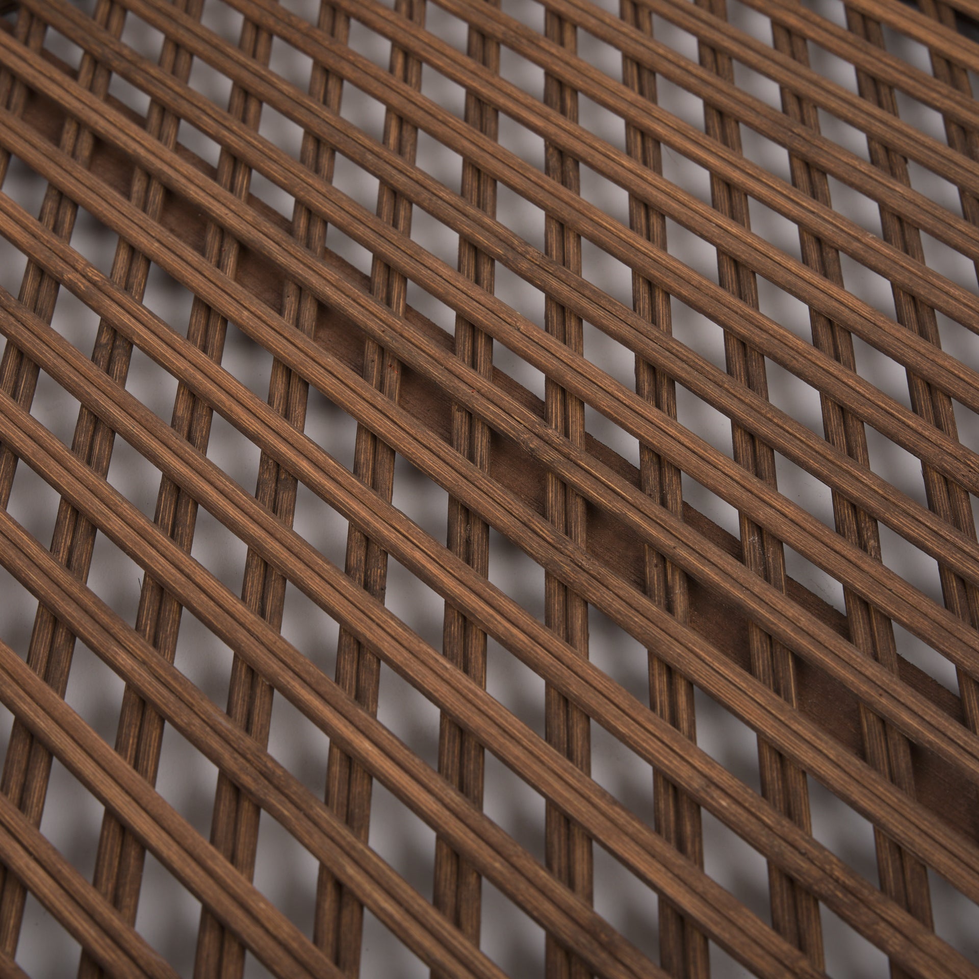 Woven wicker trays in a medium brown finish.