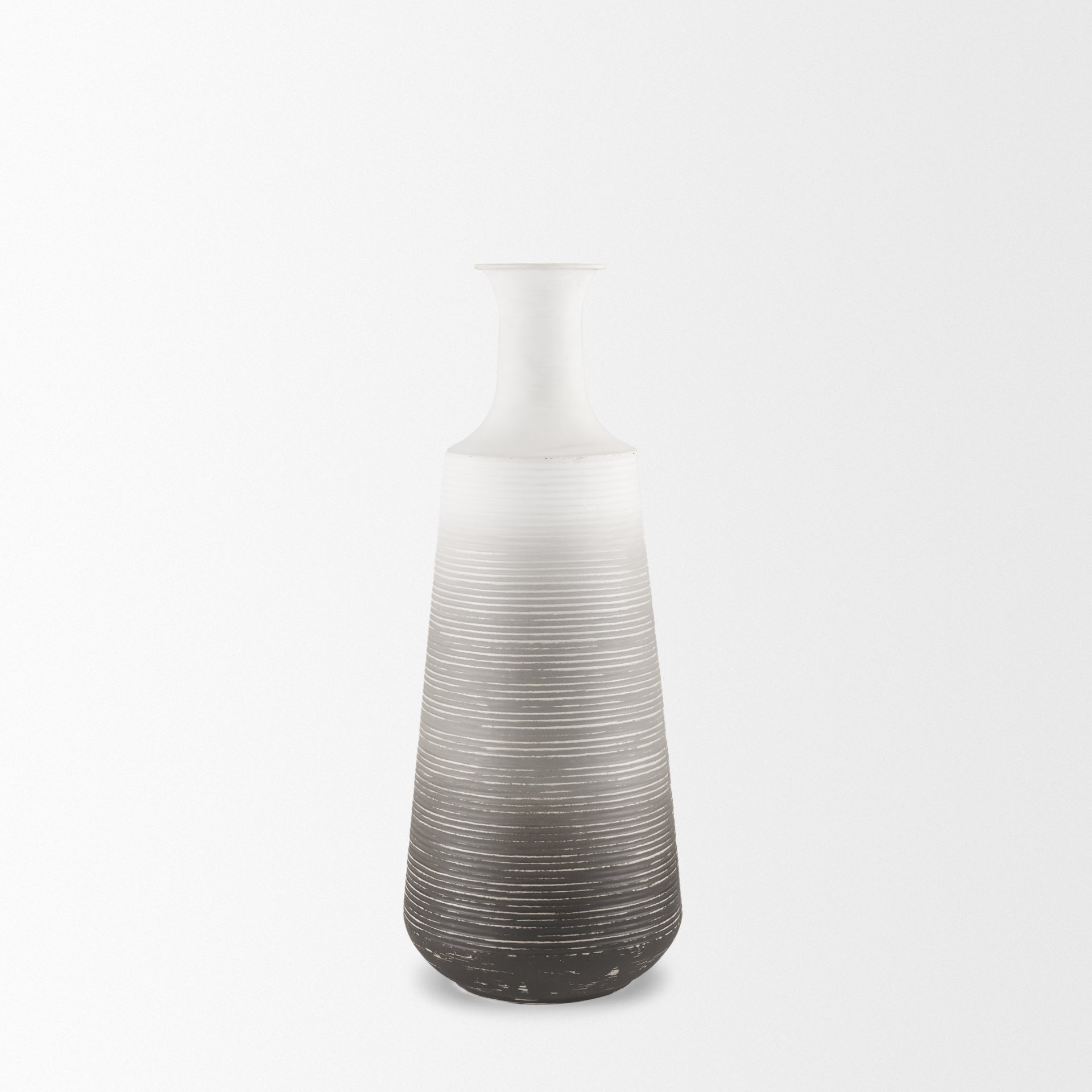 The striking white-to-black ombre finish adds striking visual appeal to the vase's contemporary design