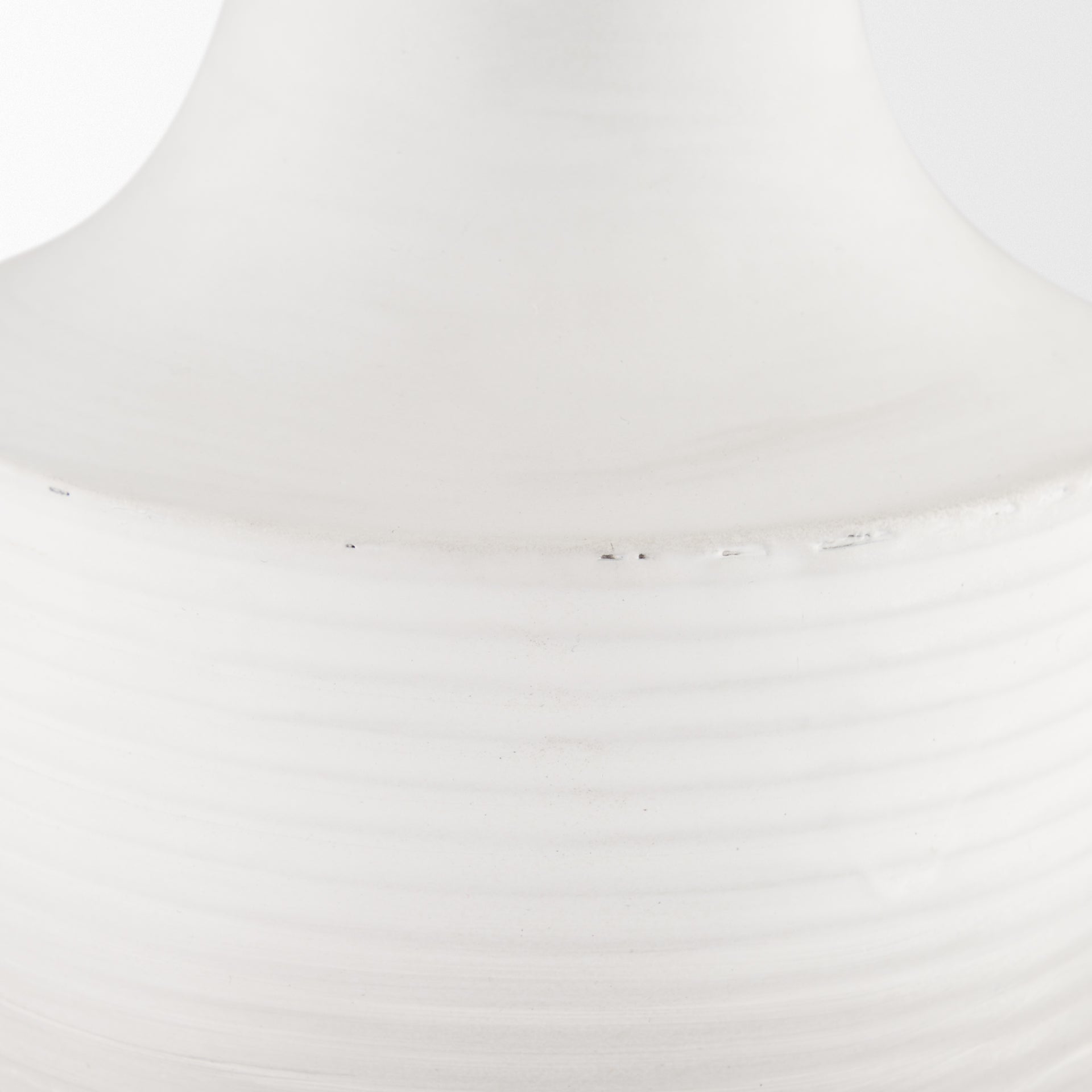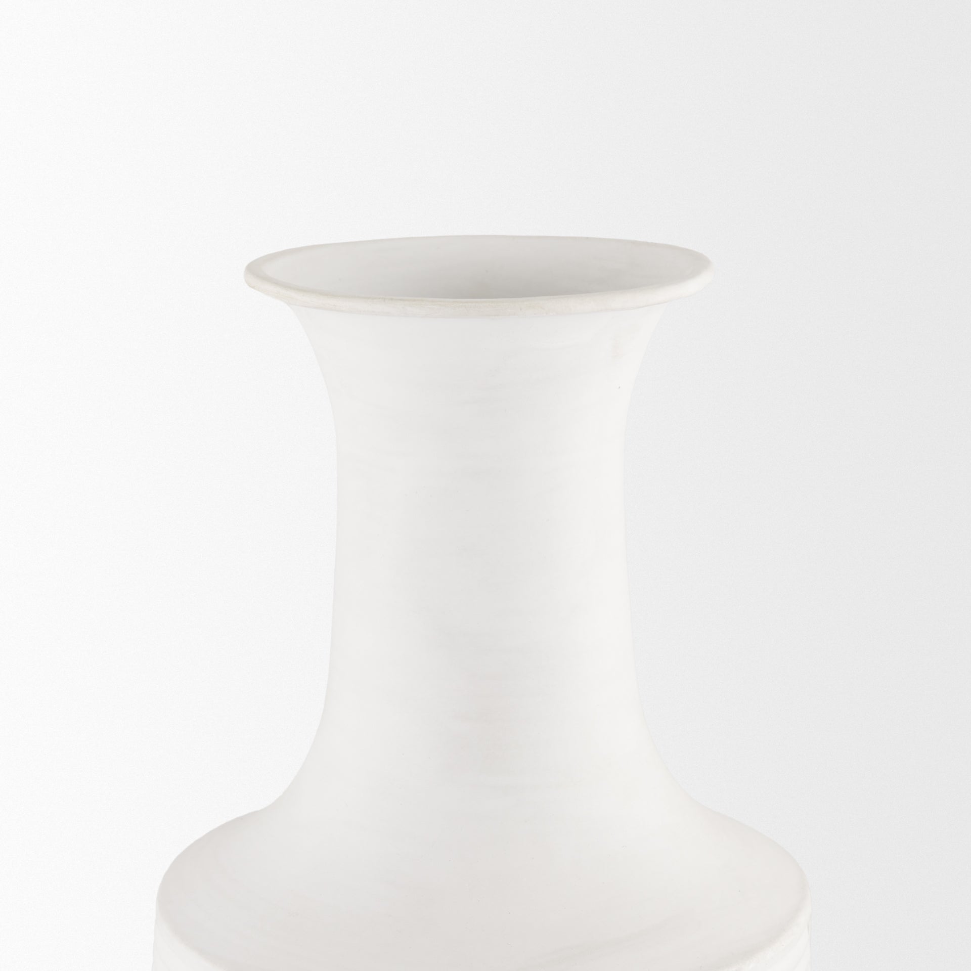 Toru is an embossed metal vase with a white-to-gray ombre finish.