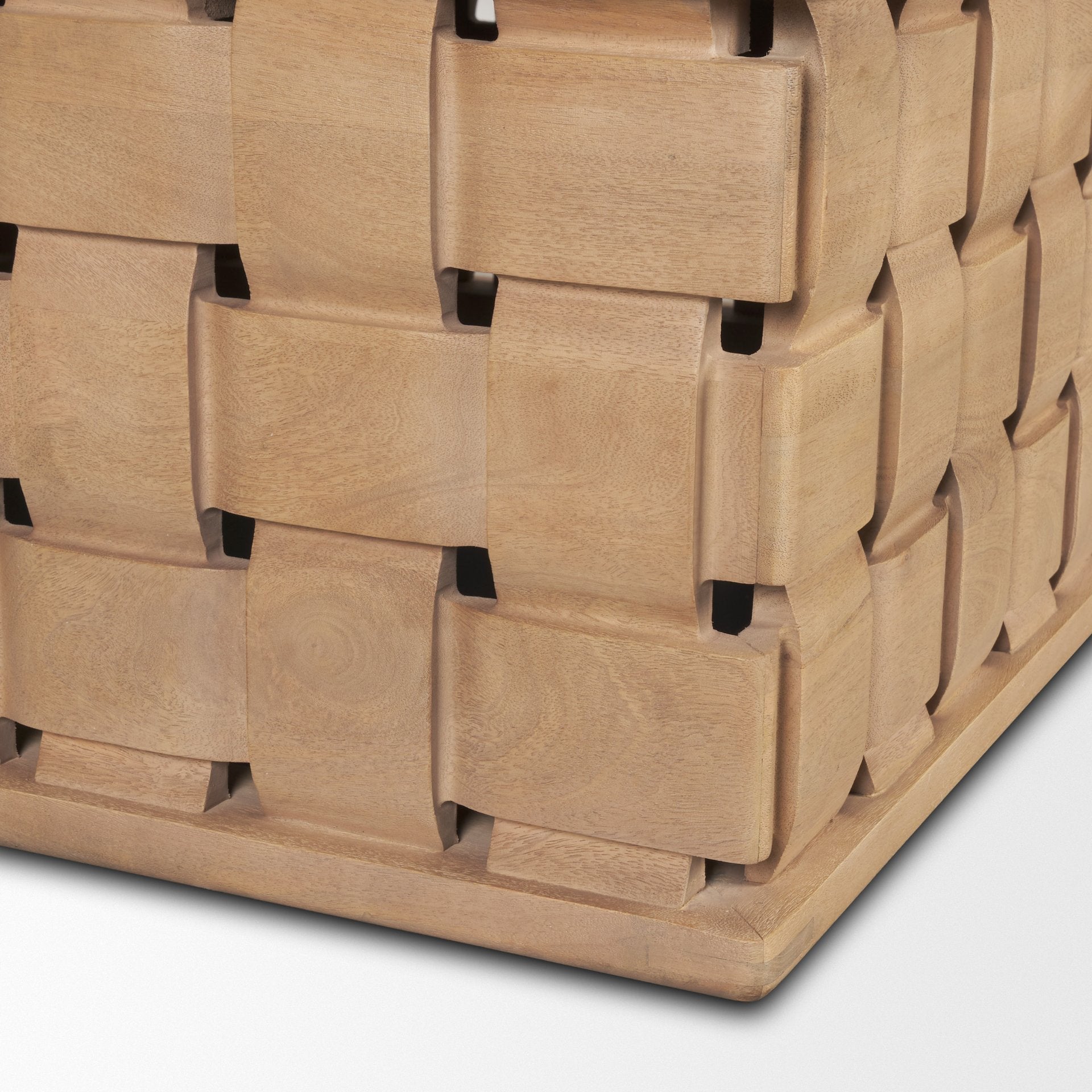Trellyn 48" Light Brown Wood w/ Carved Woven Base Square Coffee Table