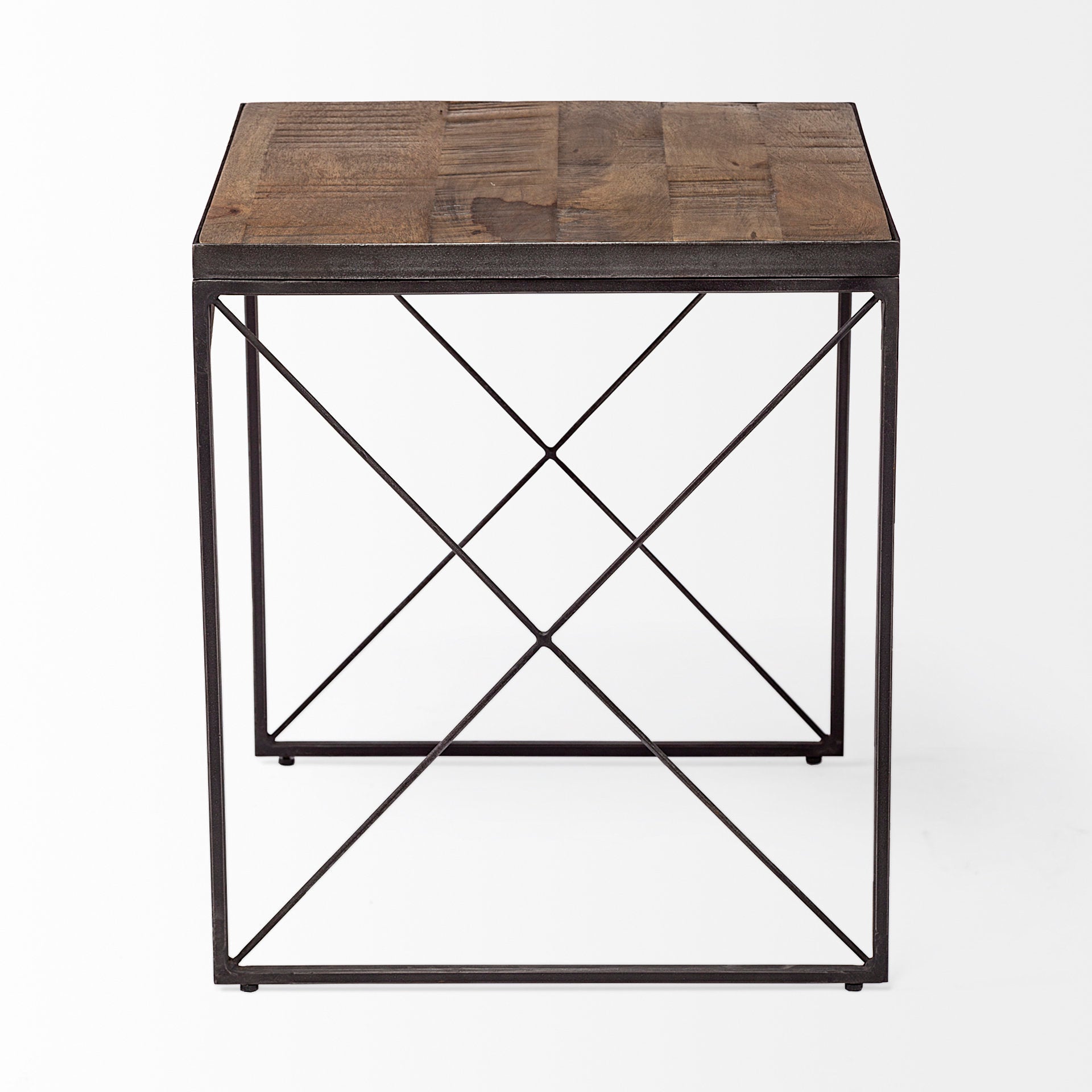 Trestman II 24" x 22.5" Square Top Medium Brown Wood and Iron Cross Braced End/Side Table
