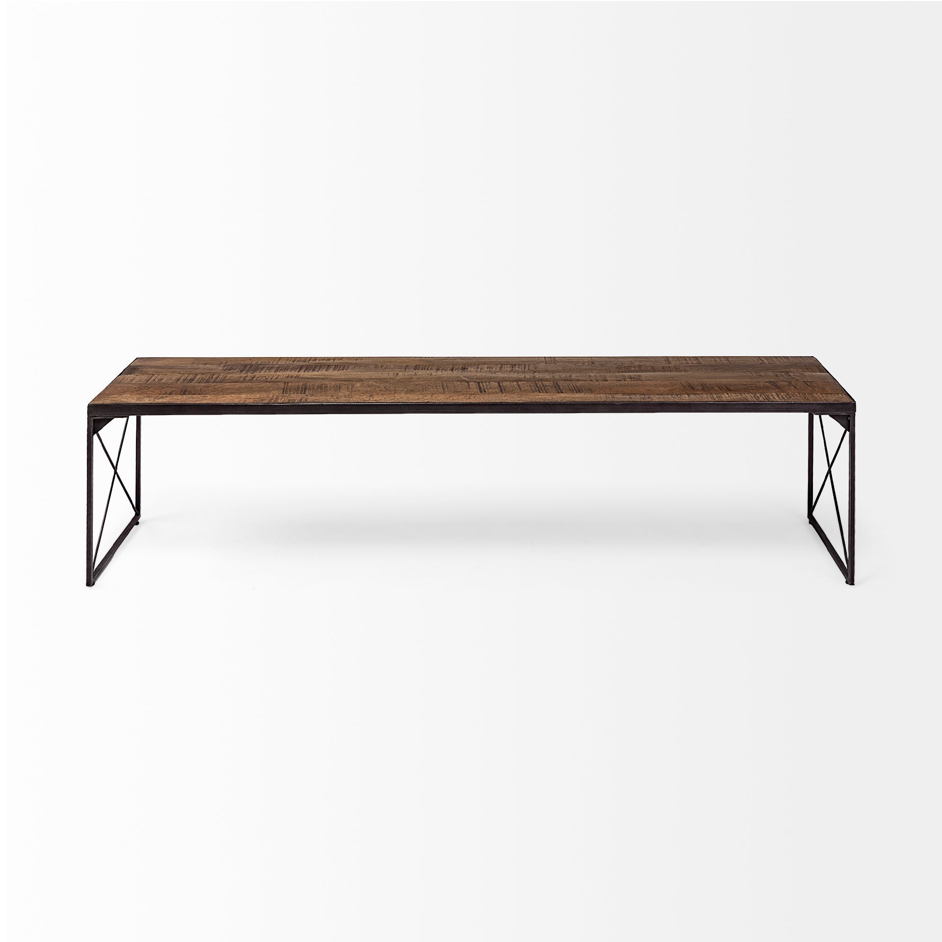 Trestman III 66L x 18W Brown Wood Top W/Black Iron Base Accent Bench