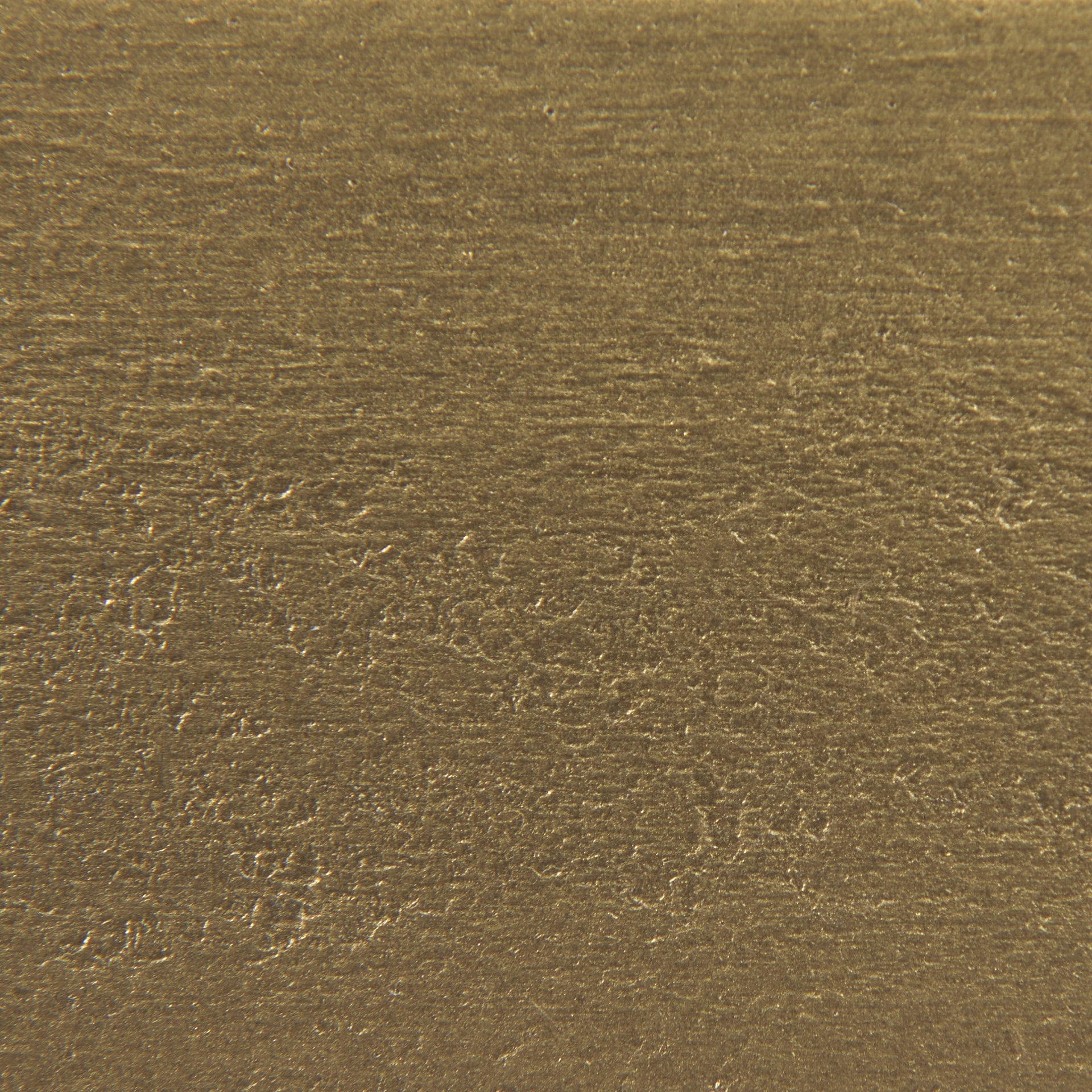 A sleek and stylish, antique gold-colored coffee table, made from sturdy iron and finished with tempered glass shelves
