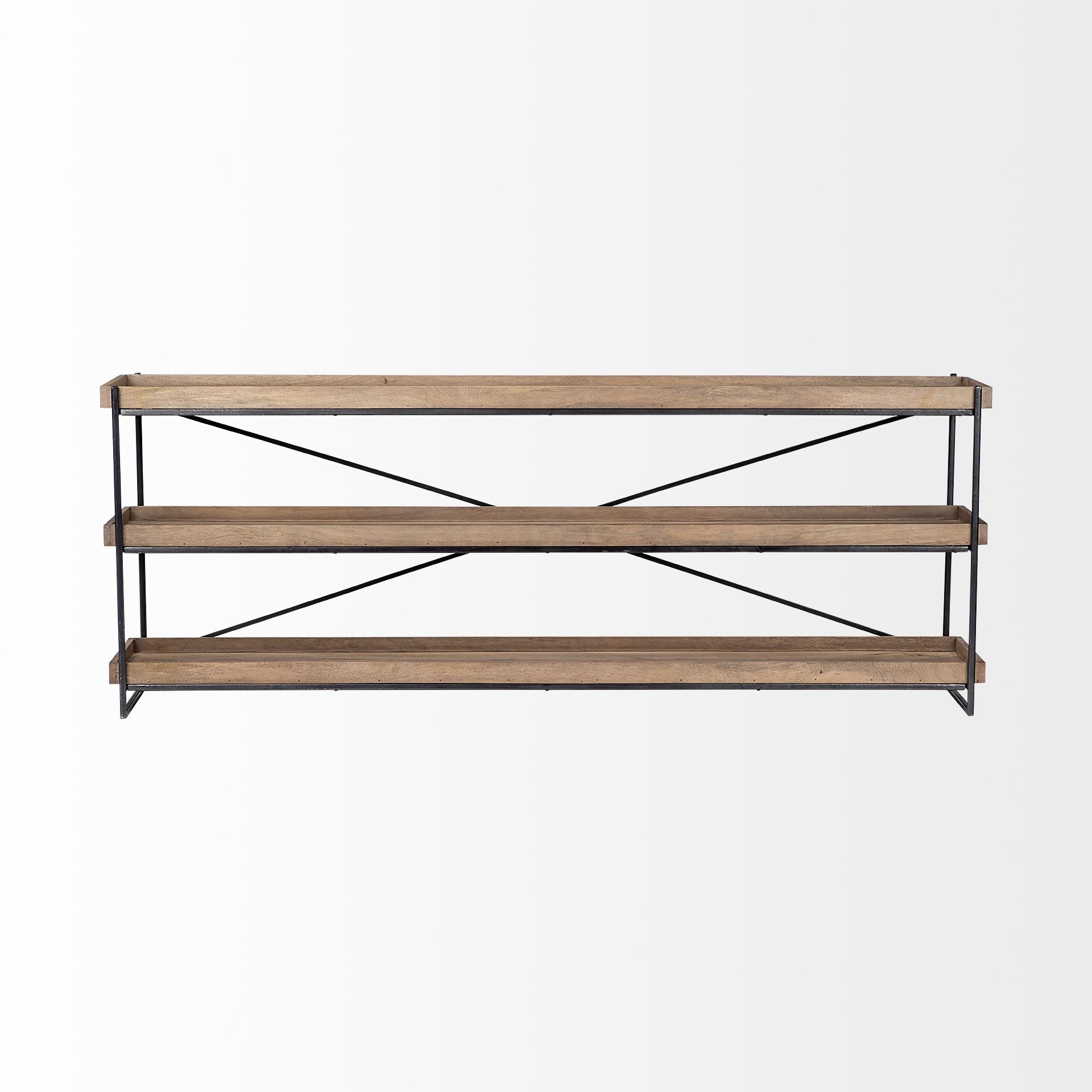 A stylish console table, made from sturdy iron and finished with solid mango wood shelves