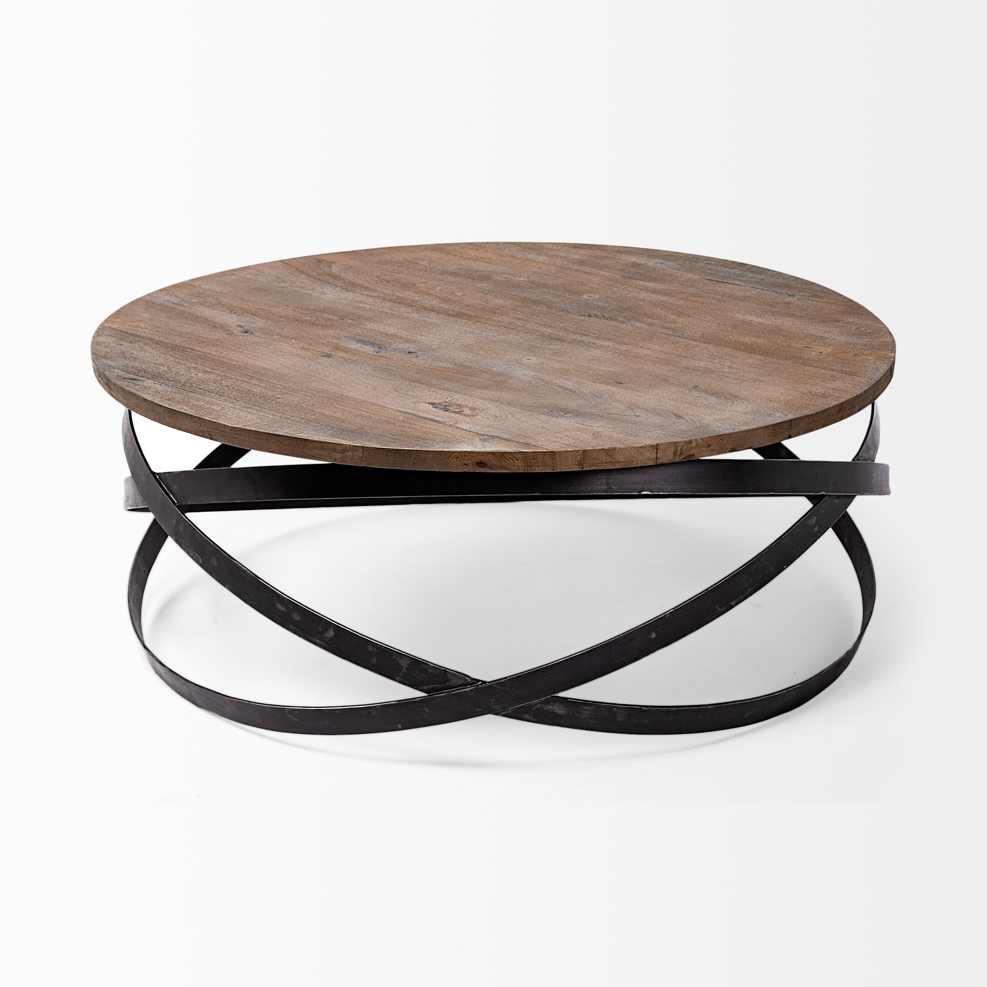 Triumph 40" Round Brown Solid Wood Top Black Metal Base Coffee Table
