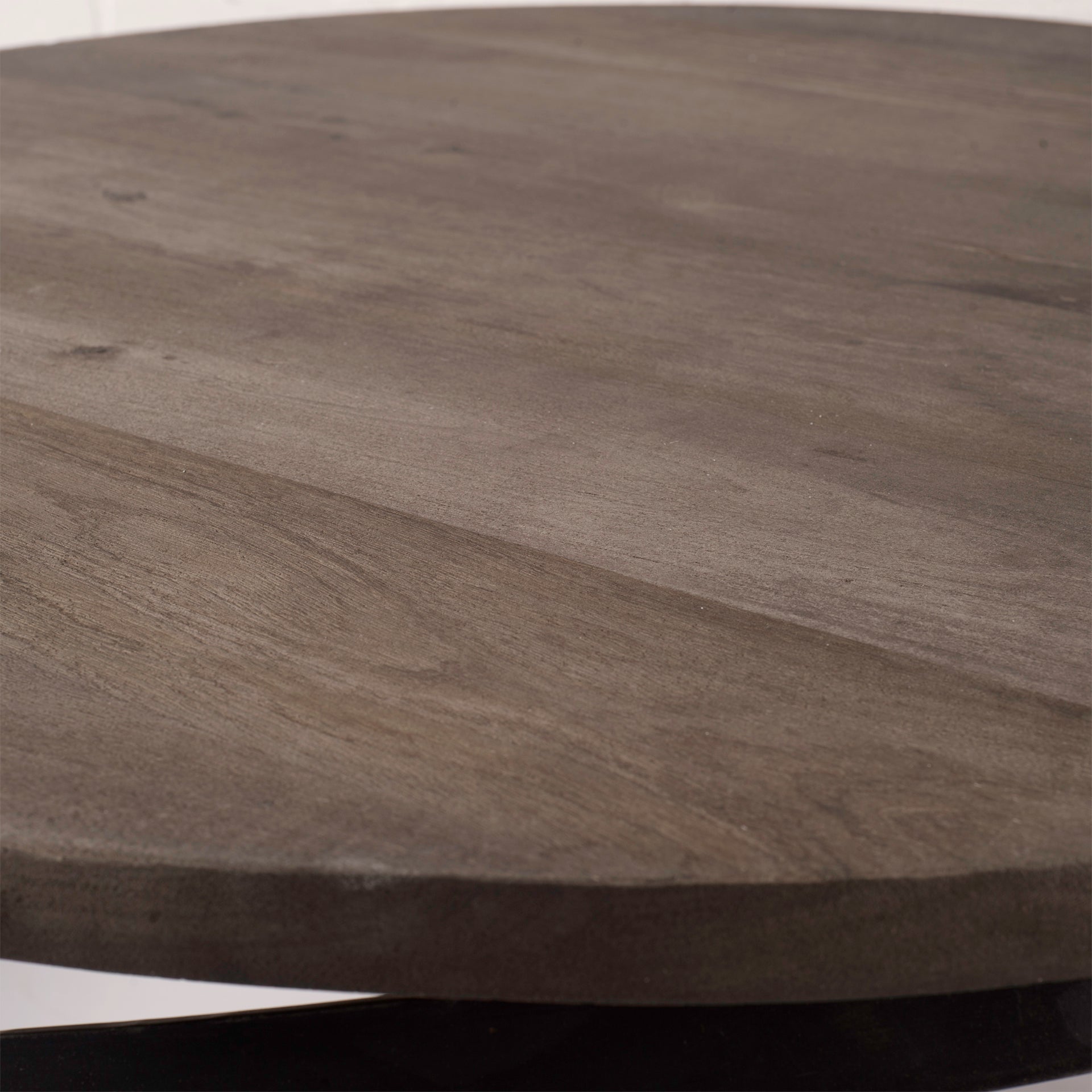 This coffee table is beautifully crafted from solid Mango wood. Its round top rests upon an interwoven, iron base that gives it a light, airy look.Β