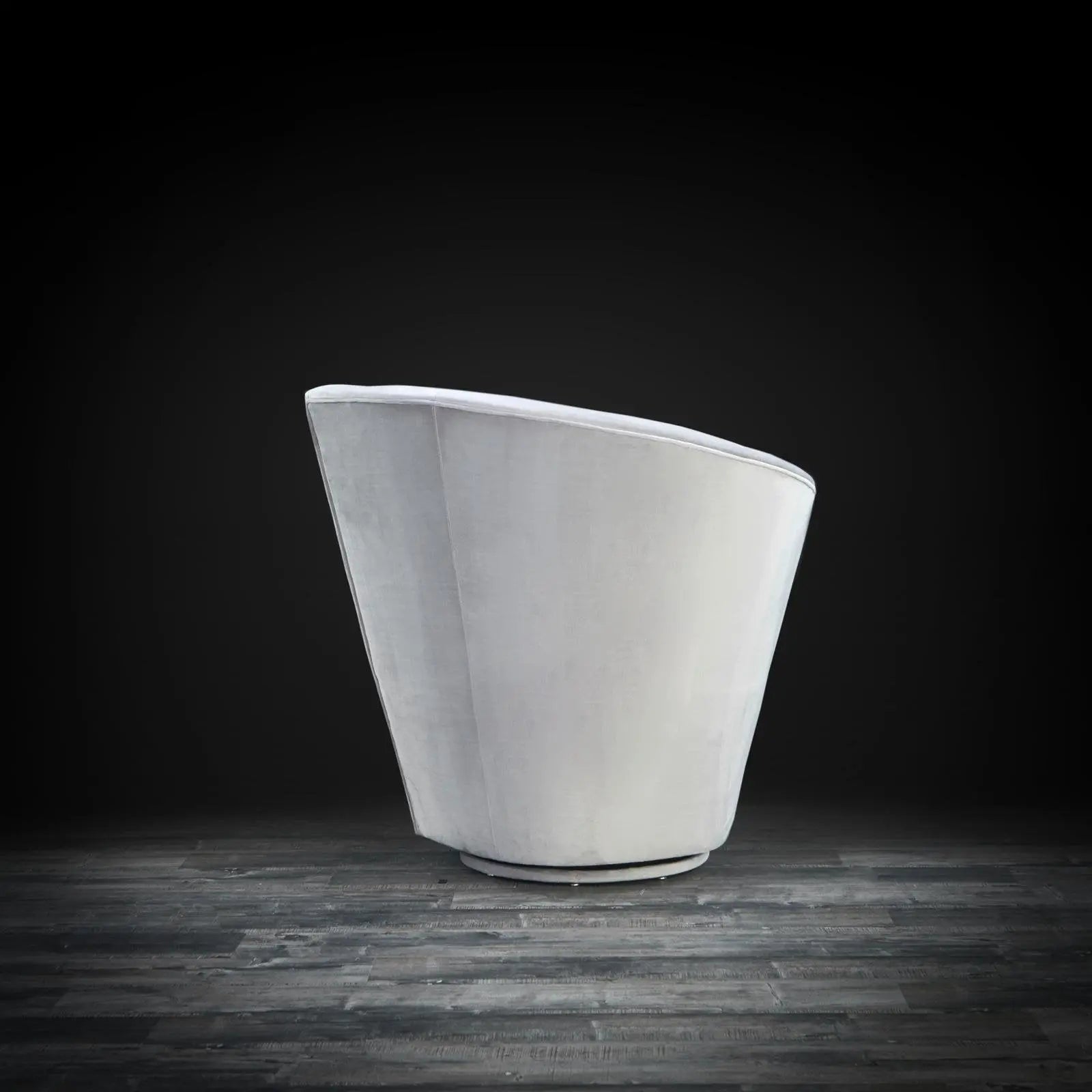 The Tulip one arm swivel chair features full upholstered seating and back with vertical channeling, and even the swivel base is upholstered in the matching velvet. It is available in RAF or LAF formats which is the one side of the back is higher than the other for added design element. The Tulip swivel chair is the perfect match for the Tulip sofa set or the Lotus sectional.