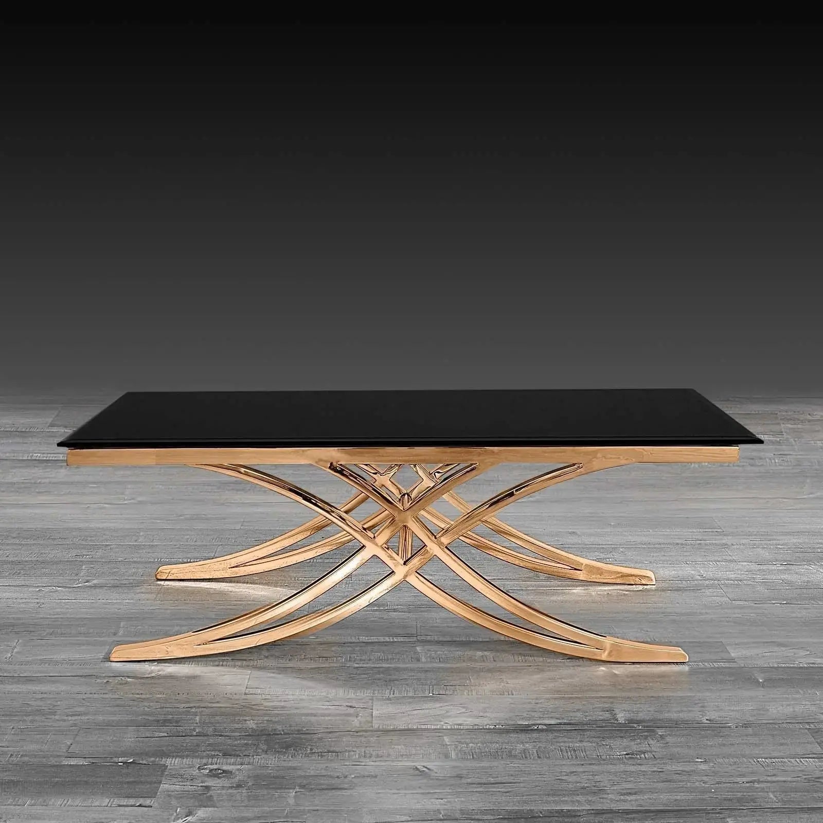 Valora Modern Stainless Steel Rectangular Coffee Table by Roberto Grassie has a 12mm tempered black glass top with silver, rosegold, titanium gold stainless-steel base options.