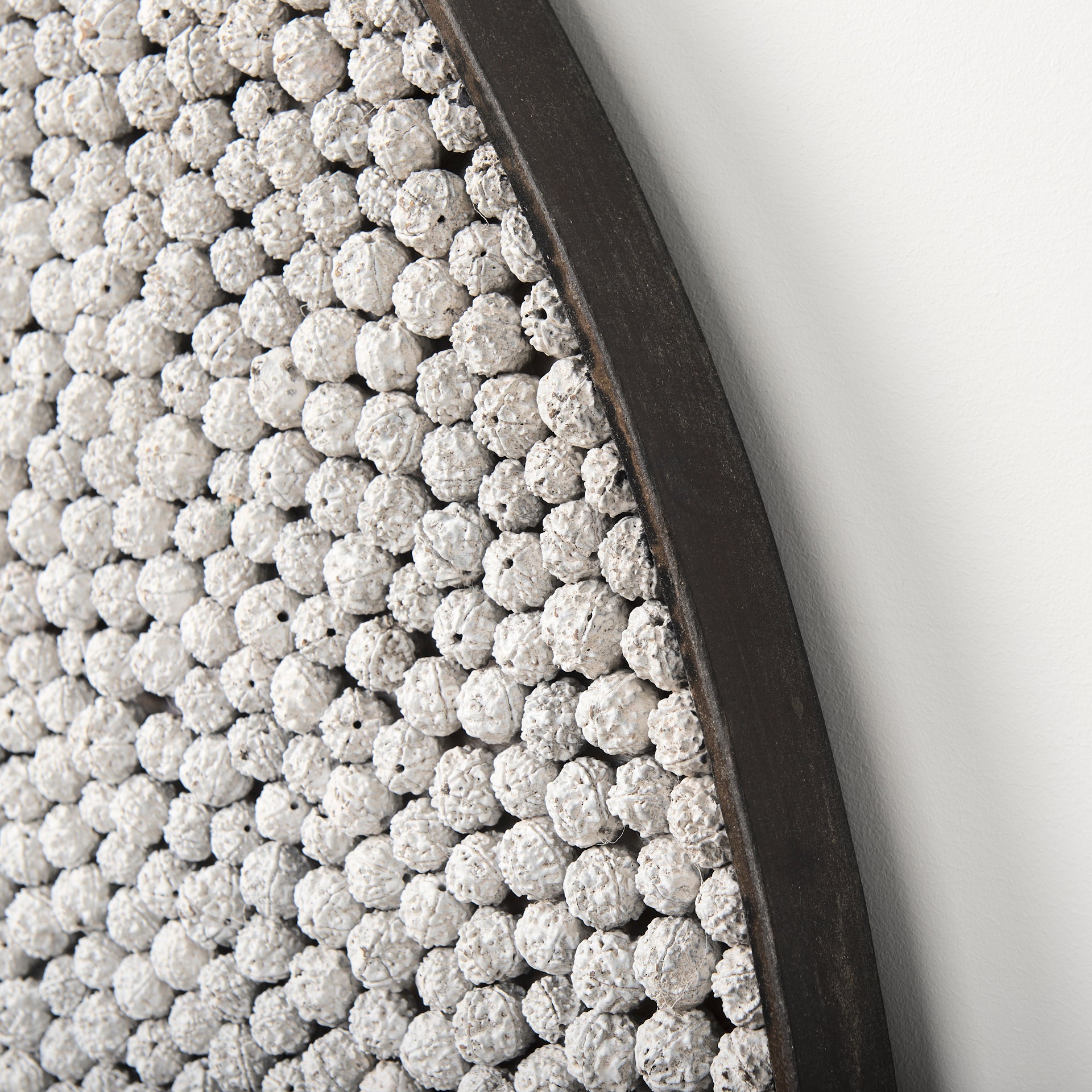 The texture and mixed size of the Rudraksha stones create a unique and stunning focal point to your space that is sure to stand the test of time. Β