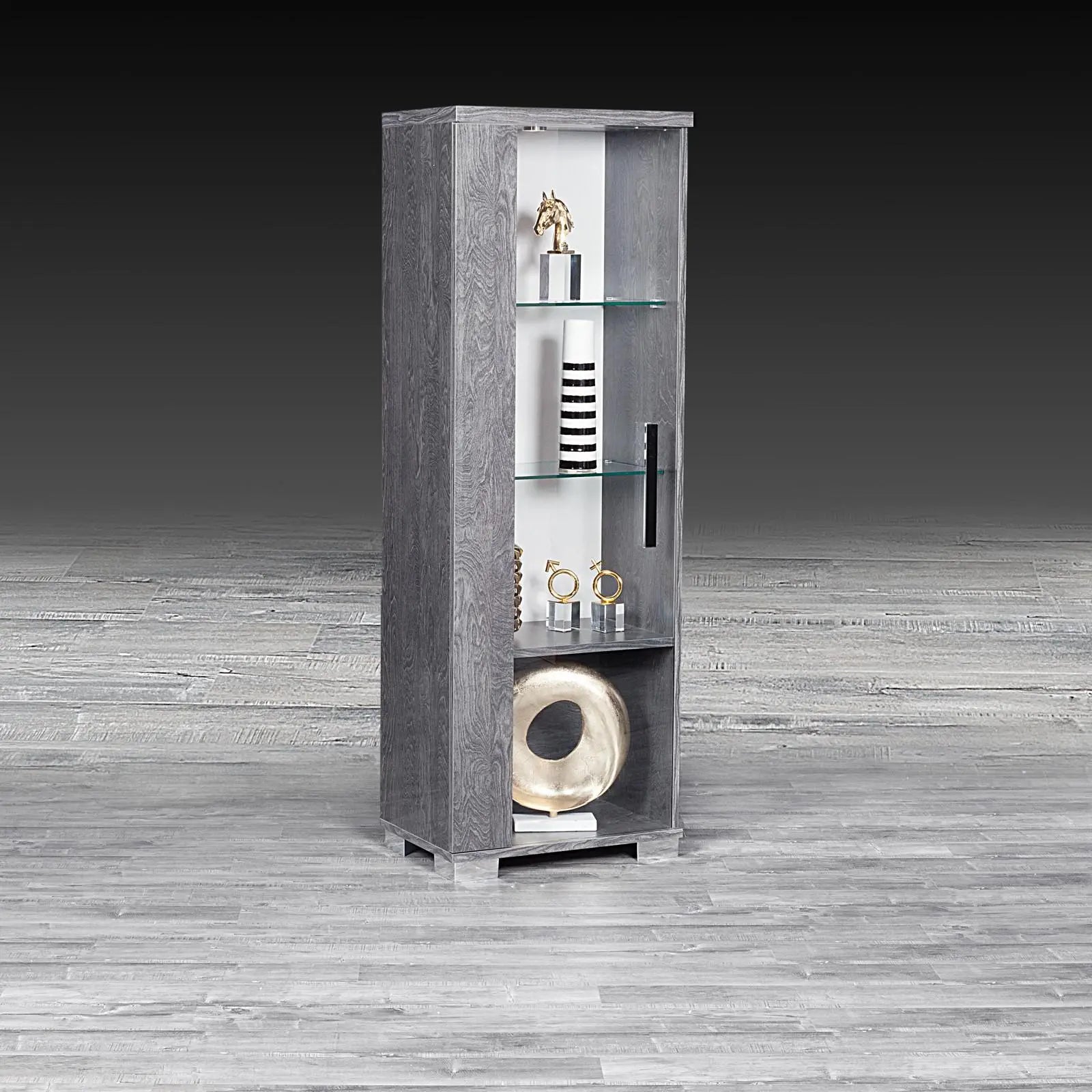 Ventura Italian One Door Curio by Norhaus Furniture features gray birch high gloss lacquer frame and with four clear glass shelves.
