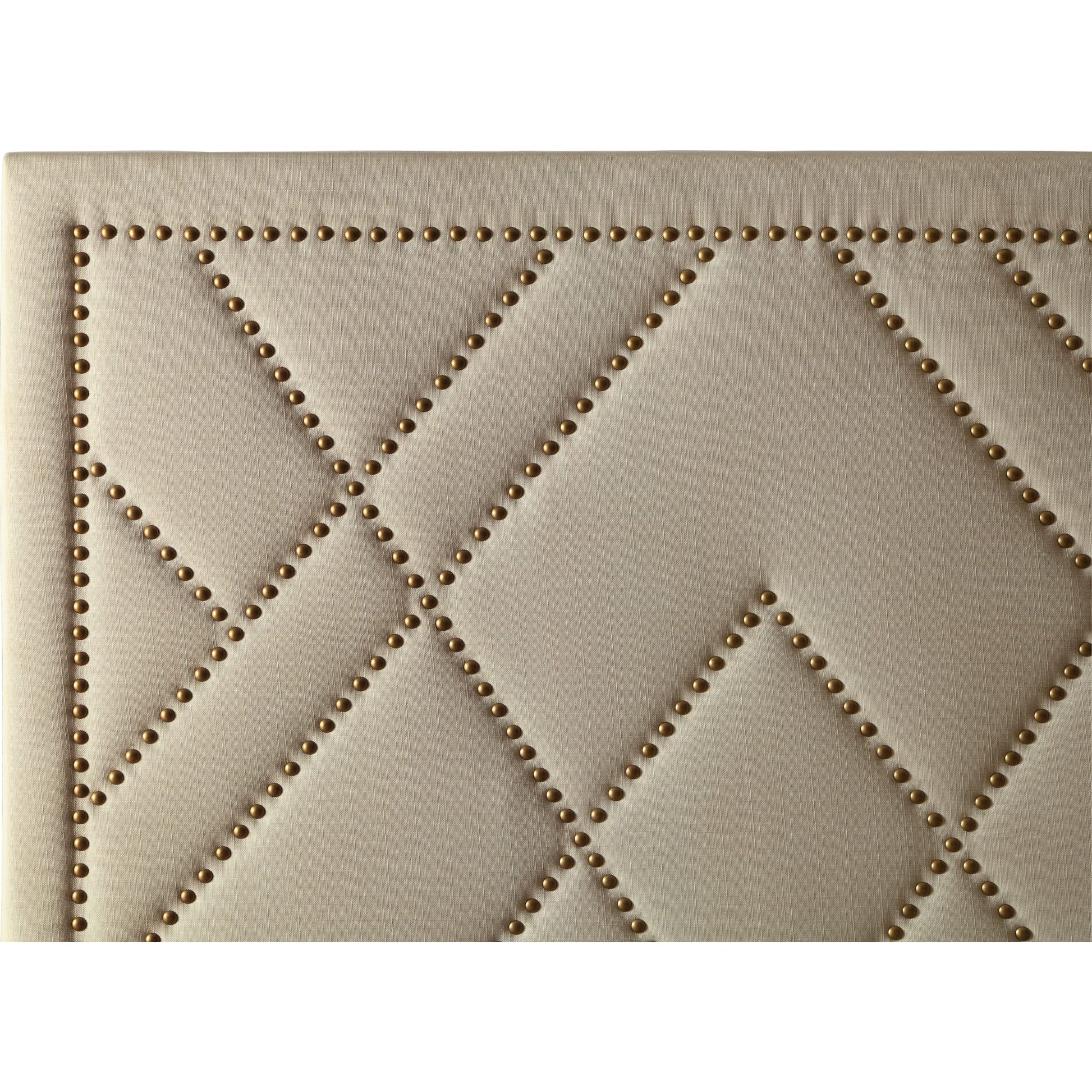 - Accented with individual antique brass nailhead trim arranged in a unique geometric pattern