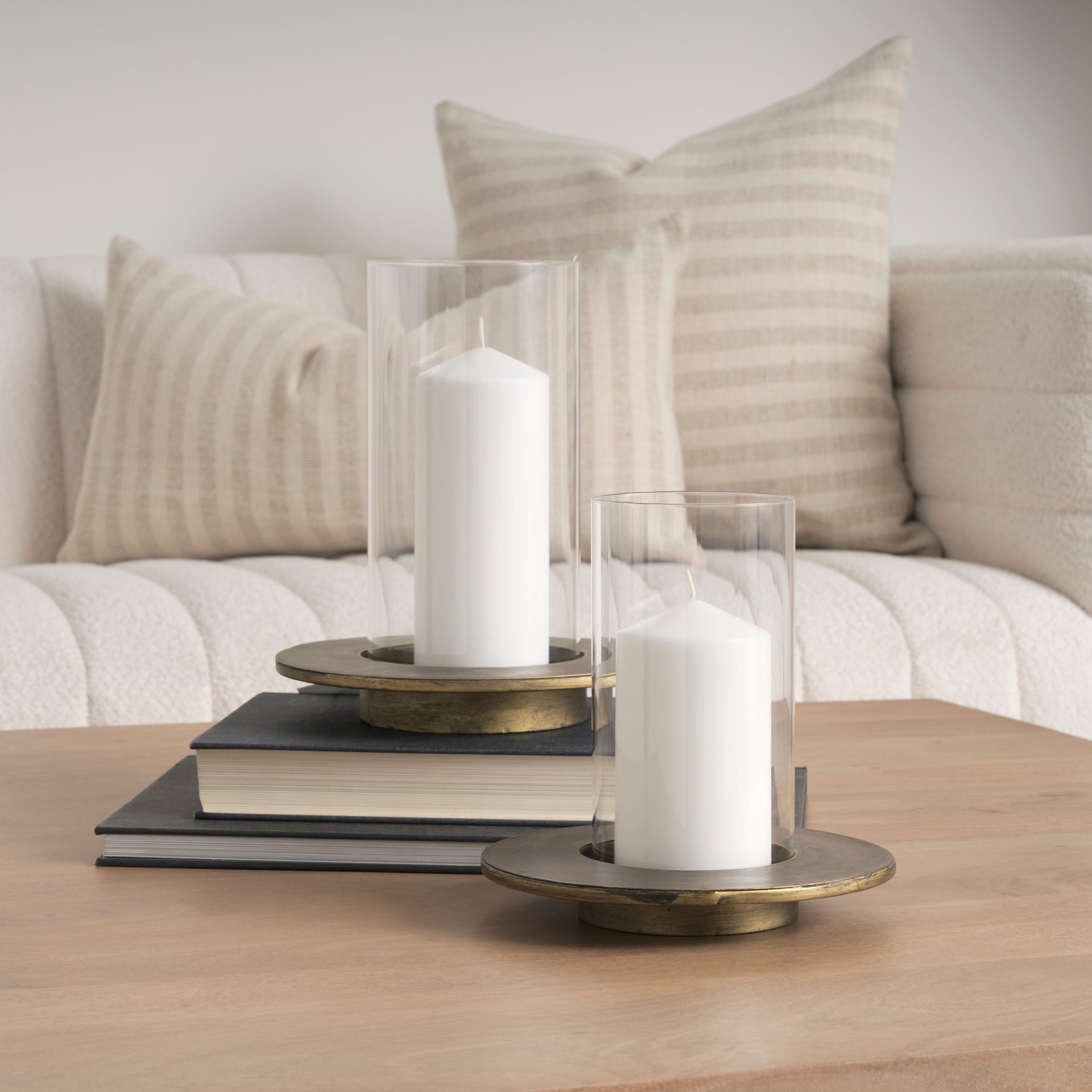 Vivian Gold Metal and Glass Hurricane Candle Holder (Set of 2)