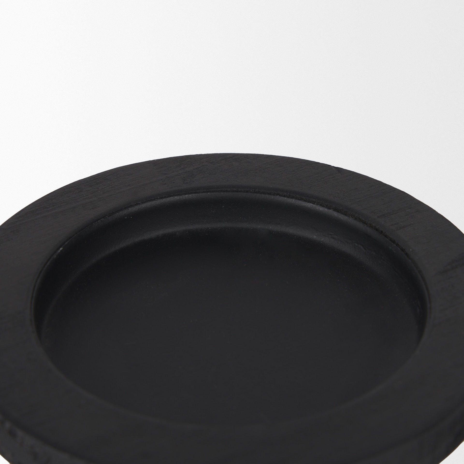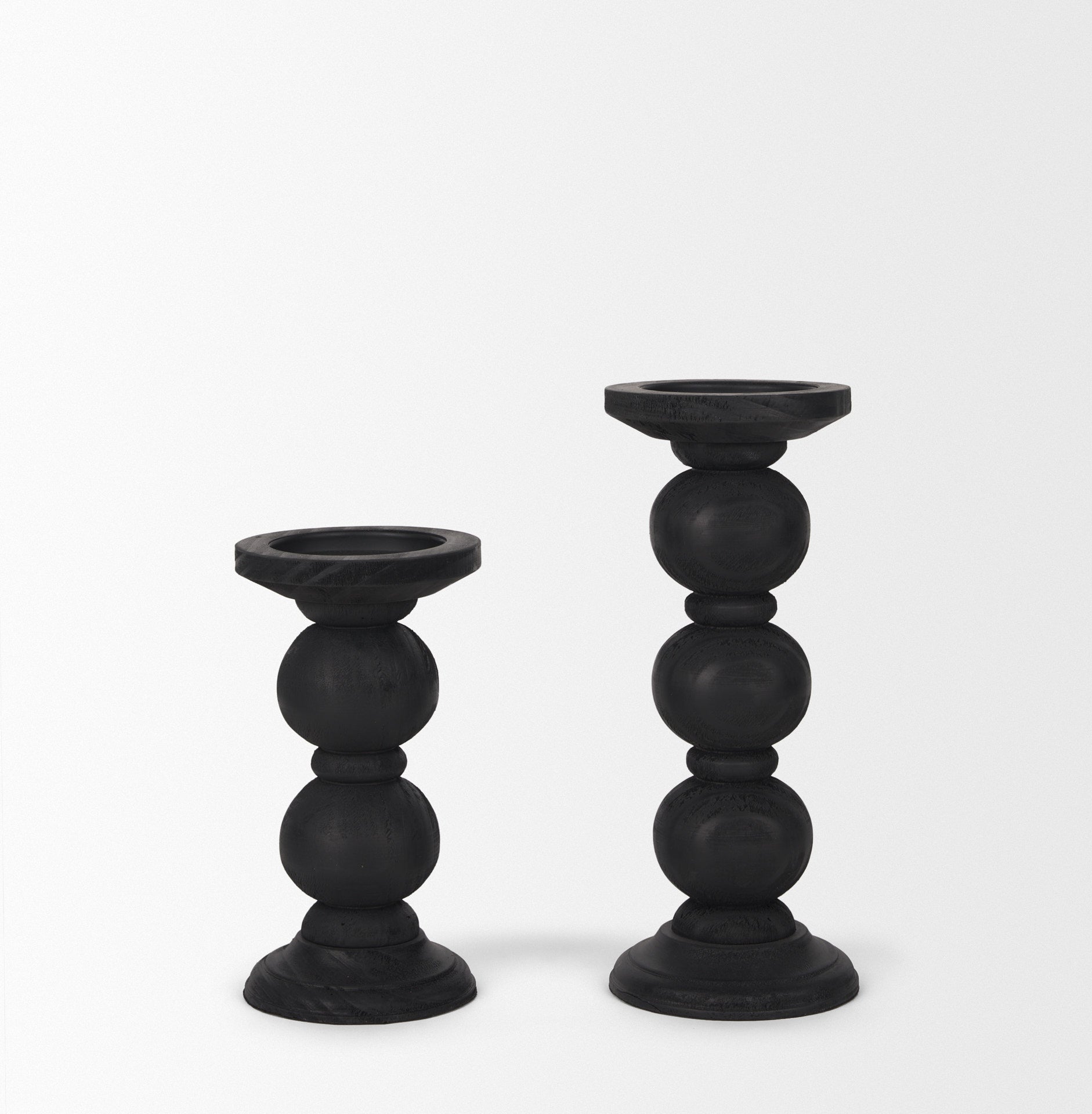 The Wanda Candle Holders, sold as a set of two, are crafted from solid wood in a matte black finish.
