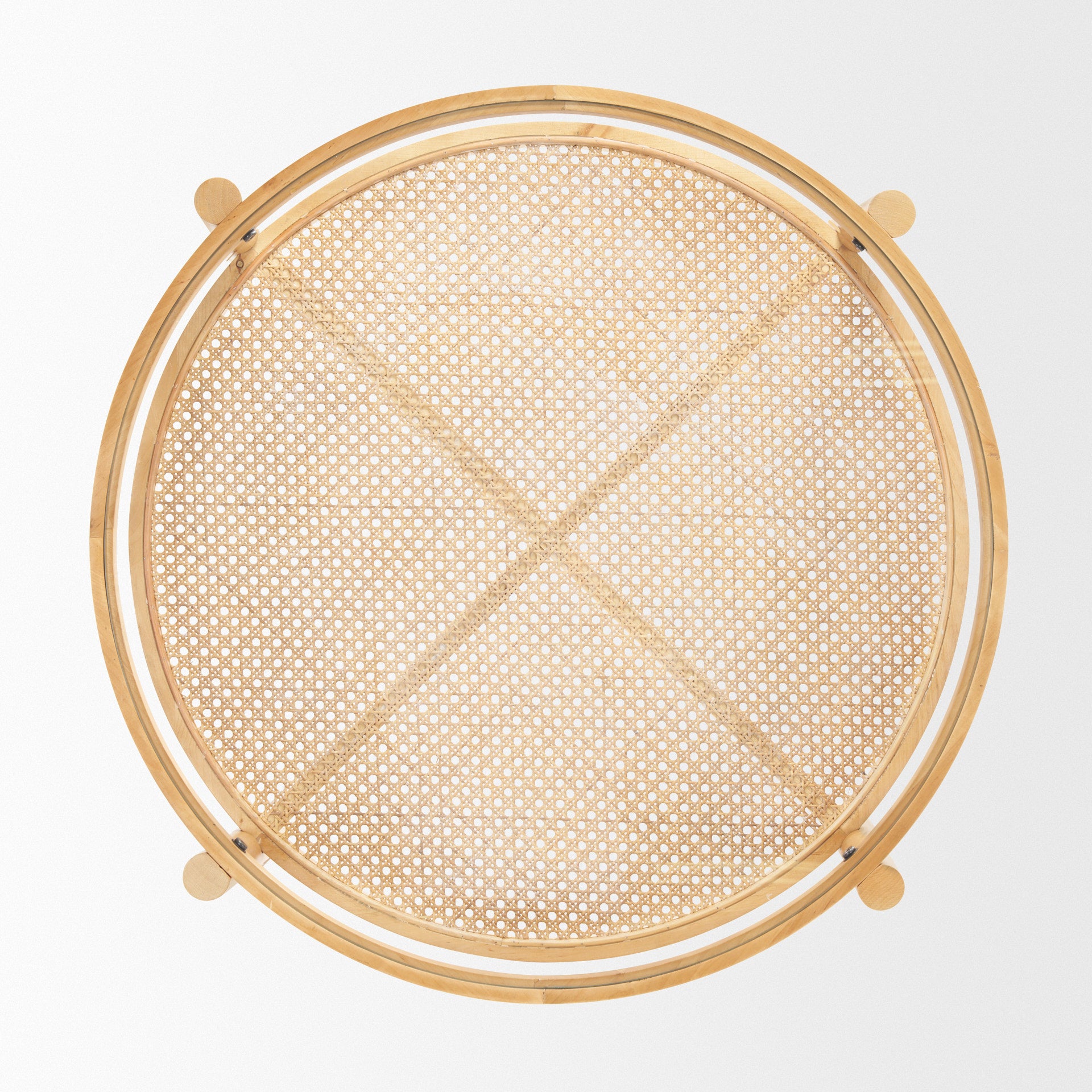 Weslyn Solid Light Brown Wood and Glass Top w/ Cane Coffee Table