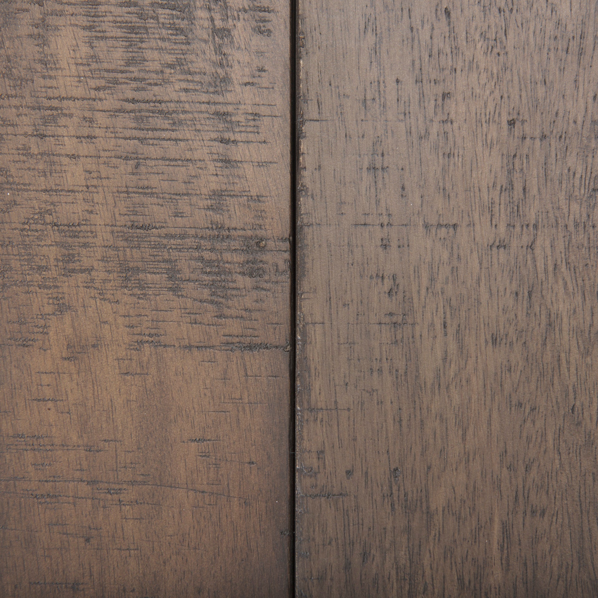 The beautifully crafted solid mango wood that has a rough-sawn texture that showcases the mottled dark and light browns of the wood.Β