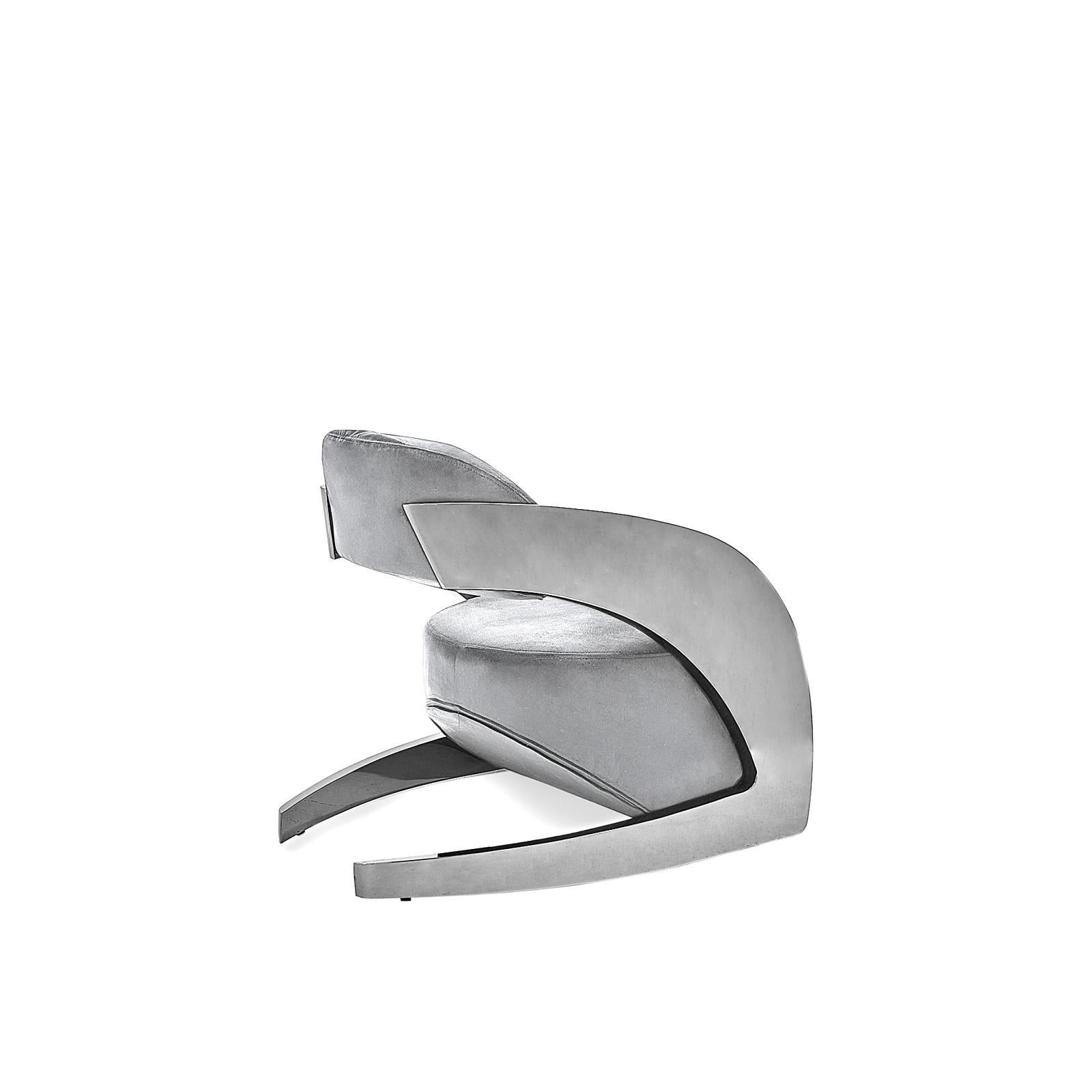 Zetta Silver Gray Accent Chair is inspired by art deco design and it uses modern finishes to create an exceptionally unique and comfortable piece of furniture. It is available in top grain velvet and Silver and Rose Gold frame.